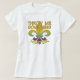 " Jetez-moi quelque chose Monsieur" avec un pourpre, vert et de l'gold fleur de lis sur un T-shirt porter aux défilés de mardi gras.