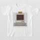 Un vieil ordinateur avec le jeu sur l'écran et les mots vieux règles de l'école. Ce design semble vraiment efficace sur ce T-shirt garçon