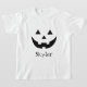 Halloween orange et noir Jack-o'-lantern citrouille visage personnalisé nom drôle mignon T-Shirt. Texte noir entièrement personnalisable (vous pouvez le supprimer si vous voulez) Unisex. Disponible en plusieurs couleurs et options de style. Vérifiez le reste de la collection pour la coordination et la correspondance des articles et des fournitures et décorations supplémentaires.