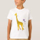 Chemise enfant girafe personnalisable avec une girafe de dessin animé mignonne grignotant sur une fleur violette et tenant quelques fleurs avec sa queue tout en patinant avec des patins à rouleaux dont les roues sont faites de fleurs.