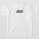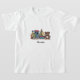 Un t-shirt enfant avec une illustration de jouets en bois artisanaux : un train, un voilier et un ours en peluche aux tons chauds. Customisez-le avec le nom de votre enfant.
