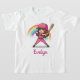 Cette adorable tenue de filles présente un joli joueur de baseball de fille doué de dessin animé en uniforme rose et casque, tenant une batte, prêt à balancer, avec un arc-en-ciel vibrant.