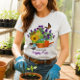 T-shirt Joyeuses Fleurs de Jardin Oiseau et Papillon blanc