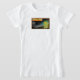 "Happy Halloween" est imprimé sur cette bannière, et une maison hantée est allumée dans le fond. On voit une sorcière voler dans la nuit et un chat noir est assis dans le cimetière. Une fleur d'Halloween jaune et rouge est à l'avant du design. Ces tee - shirts sont assortis de styles, de couleurs et de tailles.