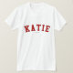 Katie ! Votre nom est-il Katie ? Ou avez-vous une épouse, une amie, un membre de la famille féminin ou un ami féminin appelés Katie ? Si oui, cette chemise de "bannière" est exactement le cadeau que vous recherchez ! Les caractéristiques de conception "Katie" dans le lettrage rouge arqué à travers le coffre dans la police classique d'université.