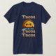 Chemise drôle avec un mignon taco de dessin animé Kawaii dansant. Le texte vintage dit : tacos, tacos, tacos.