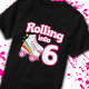 Ce design de fête de patinage est parfait pour une fête de patinage à rouleaux ou un thème d'anniversaire pour un enfant de 6 ans. Si la fille d'anniversaire ou le garçon d'anniversaire aime le roller skate, ils AImeront ce skate party design! Caractéristiques style rétro "Rolling in 6" citation d'anniversaire avec graphique à rouleaux cool avec arc-en-ciel et étoiles qui est amusant et unique. Fun roller skate design pour un 6ème anniversaire!