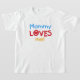 La maman m'aime T-shirts, long tee - shirt de douille, combinaisons, combinaisons organiques, robes sans manche, chemises de ruche, ruche s'habille, des chapeaux, T-shirts raglan, et l'autre habillement pour le bébé avec la conception bleue, rouge, et d'or des textes et de coeur qui lit la maman m'aime !