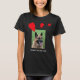Si vous aimez votre chien, vous aimerez ce t-shirt noir. Vous pouvez personnaliser le t-shirt avec votre propre photo de votre animal de compagnie, et aussi customiser les mots sous la photo. Au-dessus de la photo se trouvent trois coeurs rouges.