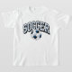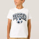 T-shirt du football dans des couleurs fraîches de bleu et de noir. Les gros caractères avec le football ont orthographié dans les lettres sportives avec le graphique très gentil de ballon de football.