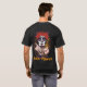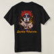 Illustration frappante de Père Noël Muerte, dépeinte avec un visage traditionnel de crâne à sucre, couronnée de roses rouges, et tenant un revolver d'or. Ses longs cadres capillaires à flot son visage tandis que ses mains tatouées présentent des gestes symboliques, mêlant beauté, mysticisme et pouvoir