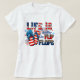 La vie est meilleure en tongs T-Shirt 4 juillet. © Tees & Sweats chez Zazzle. Ce tee-shirt pour la fête de l'Indépendance a un design amusant aux couleurs rouge, blanc et bleu du drapeau américain avec le message "La vie est meilleure en tongs" et une paire de tongs dessus.