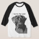 Ce tee - shirt des hommes avec les douilles raglanes colorées, caractéristiques mon portrait d'un noir Labrador, a basé par mes propres moyens l'animal familier Tessa. Un bel hommage à un animal familier aimé.