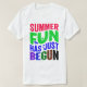 phrase ludique Summer Fun Has Just Begun en lettres colorées et audacieuses, parfait pour mettre l'ambiance pour une saison amusante à venir.