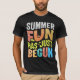 phrase ludique Summer Fun Has Just Begun en lettres colorées et audacieuses, parfait pour mettre l'ambiance pour une saison amusante à venir.
