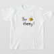 Le message sur ce T-shirt est abeille heureuse ! Avec mignon, l'amusement, le stripey, jaune-orange et noirs gaffent le graphique d'abeille et la police décorative de manuscrit des textes. Un chaque tee - shirt de jour qui est lié pour vous encourager et chacun autour de vous quand vous le portez. Disponible pour des femmes, des hommes et des enfants dans une série de styles et couleurs et une grande idée de cadeau pour n'importe qui gai et heureux d'être vivant.