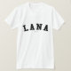 Lana ! Votre nom est-il Lana ? Ou avez-vous une épouse, une amie, un membre de la famille féminin ou un ami féminin appelés Lana ? Si oui, cette chemise de "bannière" est exactement le cadeau que vous recherchez ! Les caractéristiques de conception "Lana" dans le lettrage noir arqué à travers le coffre dans la police classique d'université.