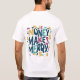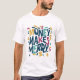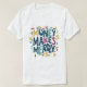 Ce t-shirt accrocheur met en vedette l'expression "Money Makes Merry" dans un mélange ludique de couleurs audacieuses et pastel.