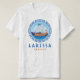 Larissa, le T-shirt homme de Grèce avec un design d'un navire grec ancien et des lettres de style grec. Ce design présente un navire de la Grèce antique et les lignes clés grecques motif dans un cercle avec la mer et le ciel. Ce design de police de style grec fait de ce tee un cadeau ou un souvenir idéal ou à porter pendant que vous êtes en vacances à Larissa.