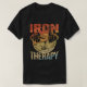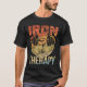 Cette conception comporte un texte en gras qui se lit "Powerlifting Strongman Iron Is My Therapy" avec un look industriel et en détresse. Parfait pour les amateurs d'haltérophilie.