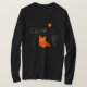 Le T-shirt à manches longues masculin foncé personnalisable avec une illustration d'origami mignon maculent avec un ballon fixé à son oreille. Sun est brillant, des foudres heurtant, pluie tombe, neige neige, petit rusé mignon est encore heureux.