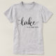 T-shirt avec "Le lac est mon endroit heureux" dans un style typographique moderne.