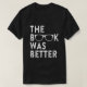 Un design minimaliste avec une pile de livres avec l'expression "The Book Was Better" dans une police moderne. Parfait pour les amateurs de livres et les lecteurs passionnés.