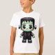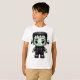La figure a une tête surdimensionnée avec cheveux noirs et une cicatrice proéminente avec points de suture sur le front. La peau est peinte dans un ton vert pâle avec des joues roses. Il porte une veste noire aux accents argentés qui suggère des boulons ou des éléments mécaniques sur les épaules et les poignets, correspondant à l’aspect emblématique du personnage. Cette représentation fantaisiste et moderne saisit l'essence du personnage d'horreur classique, séduisant les amateurs de pop culture