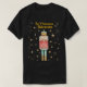 Un t-shirt de Noël Nutcracker orné d'une casserole peinte à l'aquarelle en bleu et rouge avec des étoiles brillantes en or. Le Noël de Nutcracker est écrit en haut et il peut être édité à votre préférence.