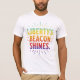 Faites une déclaration avec ce tee design et significatif. "Liberty's Beacon Shines" est écrit dans une palette de couleurs éclatante, créant un design moderne et impeccable, parfait pour l'usure quotidienne
