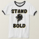 Ce t-shirt homme de ringard a un design qui affiche les mots "Stand Bold" dans une police d'impression en gras avec une lettre noire sur une ombre dorée avec une icône de tête de lion noir et or au centre dans ce thème de citation de la Bible basée sur la foi. Ce tee est d'inspiration vintage, avec des menottes contrastées et un décolleté pour un look sportif mais décontracté.