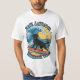 Black Labrador Retriever dog se tient en toute confiance sur une planche de surf chevauchant une énorme vague dans un paradis tropical, mettant en valeur son intelligence et sa gentillesse.