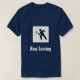 Une chemise de racquetball amusante est ornée d'un motif de signe représentant une personne tenant une raquette de racquetball. Sous le texte se lit "Serving Now", mais vous pouvez le customiser avec un nom ou un autre texte pour une touche personnelle ! Offre un grand cadeau aux entraîneurs, aux partenaires doubles ou à toute personne qui aime les sports de raquette.