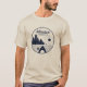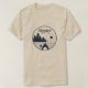 Les aventures attendent pour l'enthousiaste kayaking. Un blanc sur la conception foncée de T-shirt.