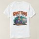 Ce vêtement blanc est orné d'une chèvre de bande dessinée portant des lunettes de soleil et un costume, assis sur un bureau d'ordinateur avec une tasse de café. Le texte ci-dessus se lit "GOAT-TING" et ci-dessous il dit "CHOSES FAITES FINALEMENT". C'est un dessin humoristique qui joue sur le mot "procrastination" et l'image d'une chèvre d'affaires.