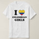 J'aime les filles colombiennes. J'aime Colombian girls. Avec des lettres noires et le coeur est avec le drapeau colombien. Si tu aimes les filles qui viennent de Colombie.