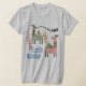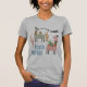 Tee - shirt | Deux llamas mignonnes avec des cadeaux de Noël sur le dos - Fleece Navidad Llama - un foulard en vert pays Llama avec des cadeaux sur le dos et l'autre Llama rose roux du sud-ouest le regardant en arrière comme il chante - entouré de cactus Saguaro décoré de décorations - Ceci fait partie d'une collection coordonnée de lama de Noël.