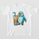 Cette illustration fantaisiste présente un pingouin joyeux en train de siroter un shake orange, accompagné d'une paille orange vif et d'un éclat d'agrumes ludique autour.