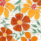 The Tropics - ce magnifique bloc imprimé T-shirt design tropical avec des tons rouge, or, orange avec feuillage. Les couleurs vives dansaient à travers le tissu, donnant vie à un paradis luxuriant et exotique. Les tons rouges évoquent la chaleur d'un coucher de soleil tropical, tandis que les tons or et orange apportent une touche d'opulence, rappelant les auvents ensoleillés et le sable doré.