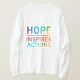 Ce design de t-shirts vibrant et attrayant comprend le message puissant "Hope Inspires Actions" en lettres audacieuses et multicolores. L'arrière - plan abstrait ajoute un élément dynamique et artistique, ce qui en fait une pièce frappante visuellement. Le design est parfait pour quiconque croit au pouvoir transformateur de l'espoir et à l'importance d'agir.