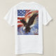 Le vol Eagle avec le drapeau américain et le lever de soleil à l'arrière-plan au-dessus de la neige ont couvert des montagnes