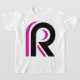 Lettre majuscule R faite en rose et noir. Ce design semble vraiment efficace sur ce T-shirt garçon