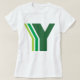 Une lettre verte y en majuscules. Ce design semble vraiment efficace sur ce T-shirt féminin