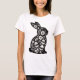 Silhouette de lièvre de Pâques noire avec motifs floraux, charme folk et style contrasté. Idéal pour les chemises et accessoires ; accentue l'aspect vintage folk et l'ornementation naturelle.