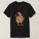 Festive ornament featuring a playful chicken dressed as Santa Claus atop a beautifully decorated Christmas tree.