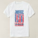Ce graphique patriotique de la Ligue de la Justice est peint en bleu et en rouge, les membres de la Ligue ont posé en alternance des bandes de couleurs entre le logo du film de la Ligue de la Justice.
