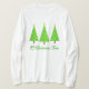Tee in a modern take on a classic Christmas tree theme - trois arbres en pois vert citron sur un arrière - plan vert profond, avec le texte "O Christmas Tree"