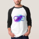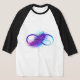 Symbole de l'infini avec une belle plume peinte en couleurs vives violettes et bleues sur fond blanc.