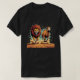Vibrant comic-style duo of a roaring lion and nimble llama racing in bold colours, perfect for energetic streetwear and youth apparel, capturing motion and wild teamwork.