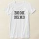 Montrez-vous avec ce T-shirt avec les mots "Book Nerd" dans un style varié en noir. *Veuillez noter que le filigrane Zazzle qui apparaît dans l'aperçu du zoom n'apparaîtra pas sur le produit imprimé final. © Bookish and Wonderful